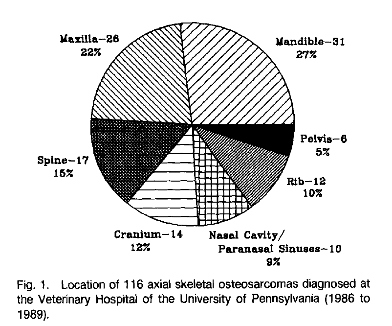 Heyman, S. J., Diefenderfer, D. L., Goldschmidt, M. H., & Newton, C. D. (1992). Canine axial skeletal osteosarcoma: A retrospective study of 116 cases (1986 to 1989). Veterinary Surgery, 21(4), 304–310.